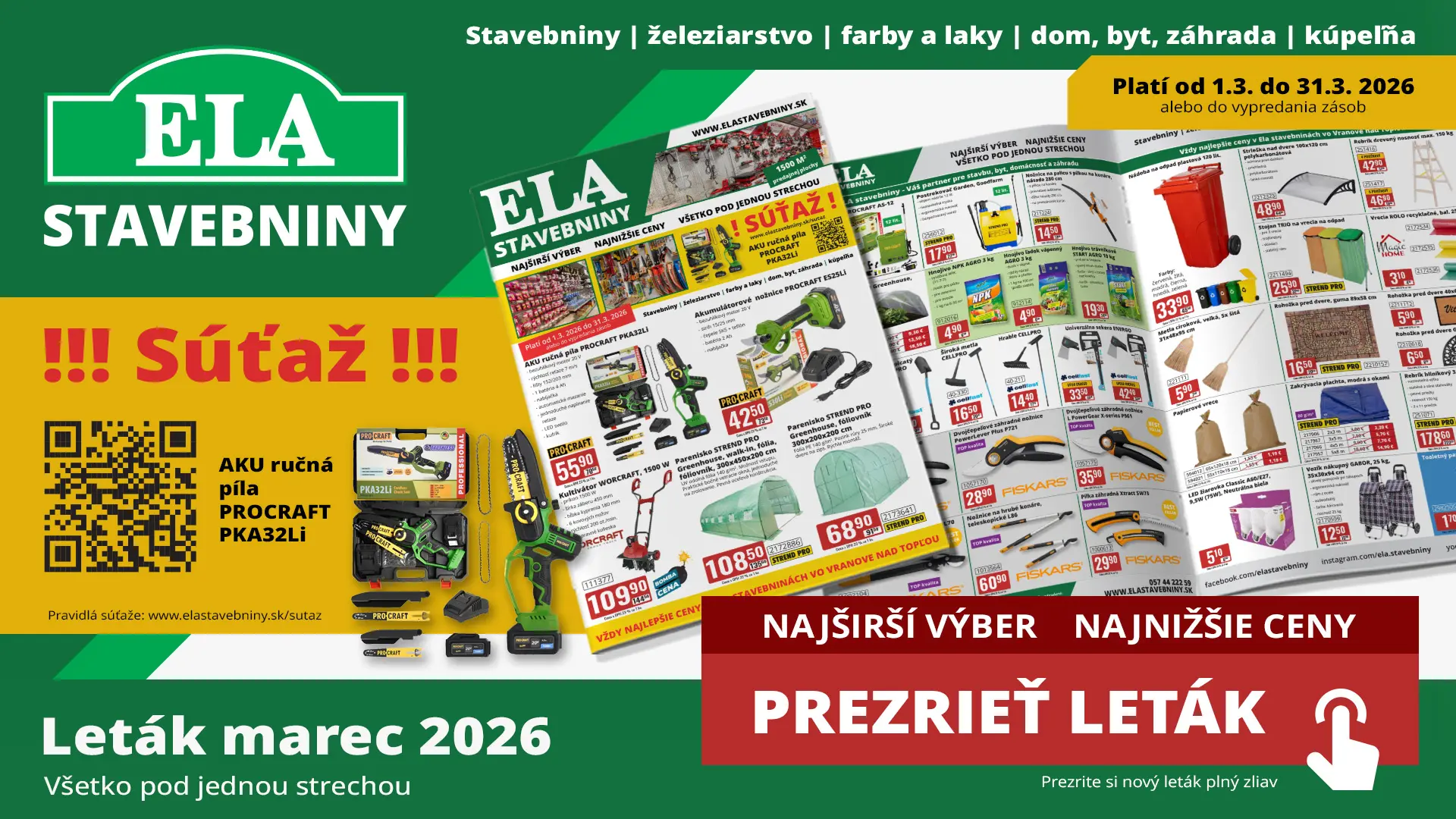 Široký sortiment stavebných materiálov a náradia.